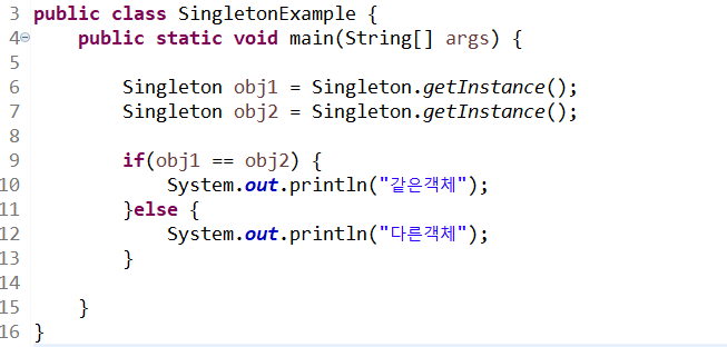따로 객체 생성 할 필요 없이 바로 클래스명 Singleton을 사용하여 불러올수 있다. (Singleton.getInastance();)